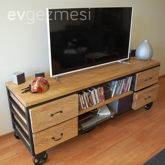 Bunun çekmeceler ini demirden yapıp rengarenk boyaci cam üstüne de retro tarzi yazlar yazdiricam ayaklarına da tekerlekli yapıcam alt resimdeki gibi