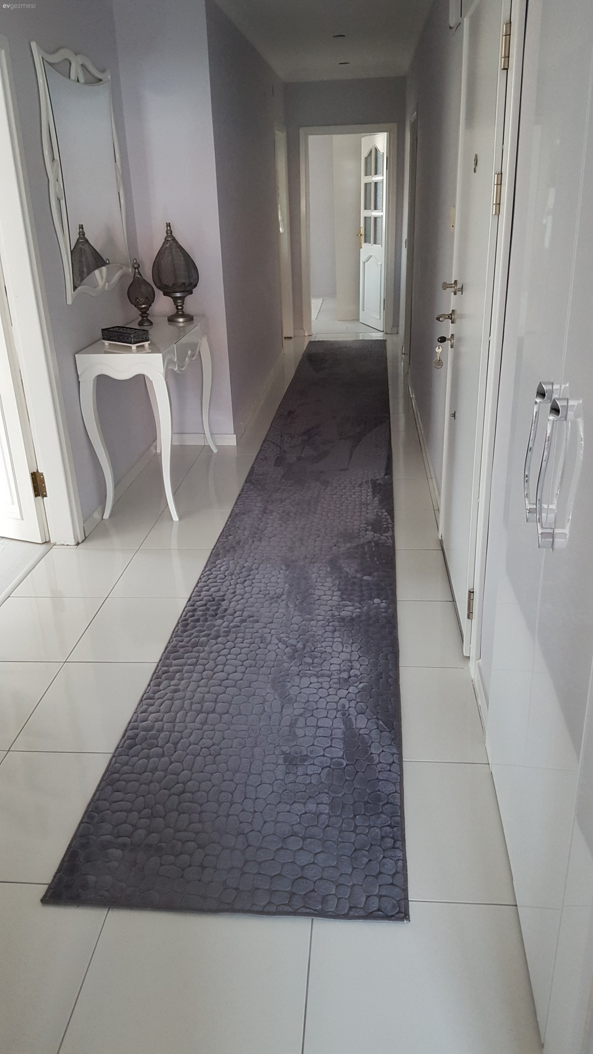 Eviniz çok güzel sade. Ayrıca parkeleriniz alışılmış olanlardan çok farklı eve ayrı bir hava katmış sadece antrenizde o boydan boya serilmiş yolluk çok basit olmuş ve dar olan yeri karartmış. Hiç bir şey sermemek bile daha hoş daha sade gösteriyor. Yada küçük iki kilim.