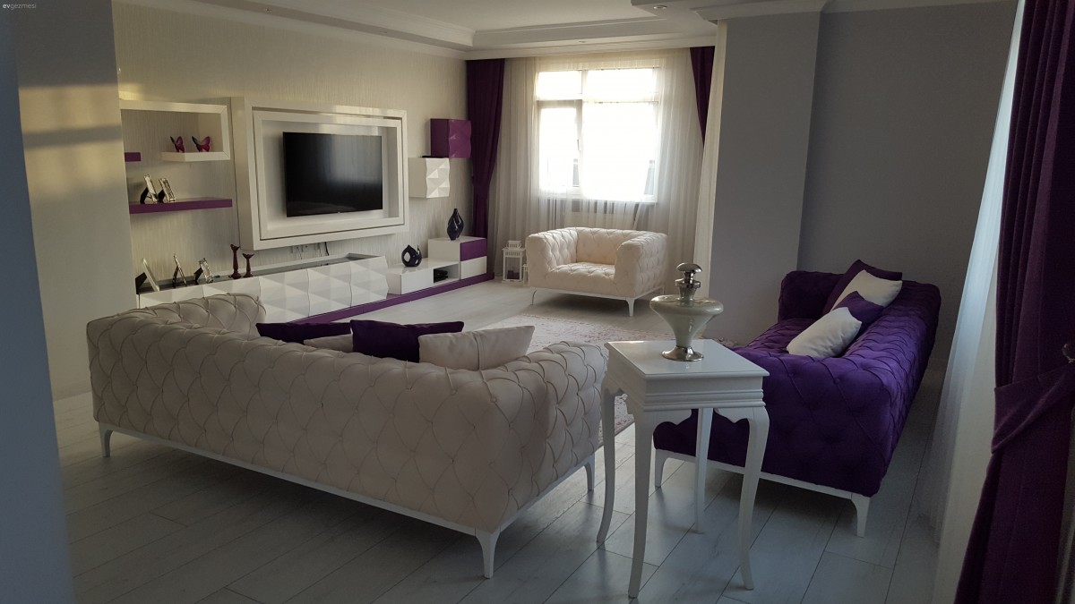 Çok güzel bayıldım benimde salonum mor ve krem kolonları ayna kaplatın derim ,gümüş rengi aksesuarlar alın masanın üstüne gümüş rengi büyük şamdan alın mor ve gümüş çok asil duruyor