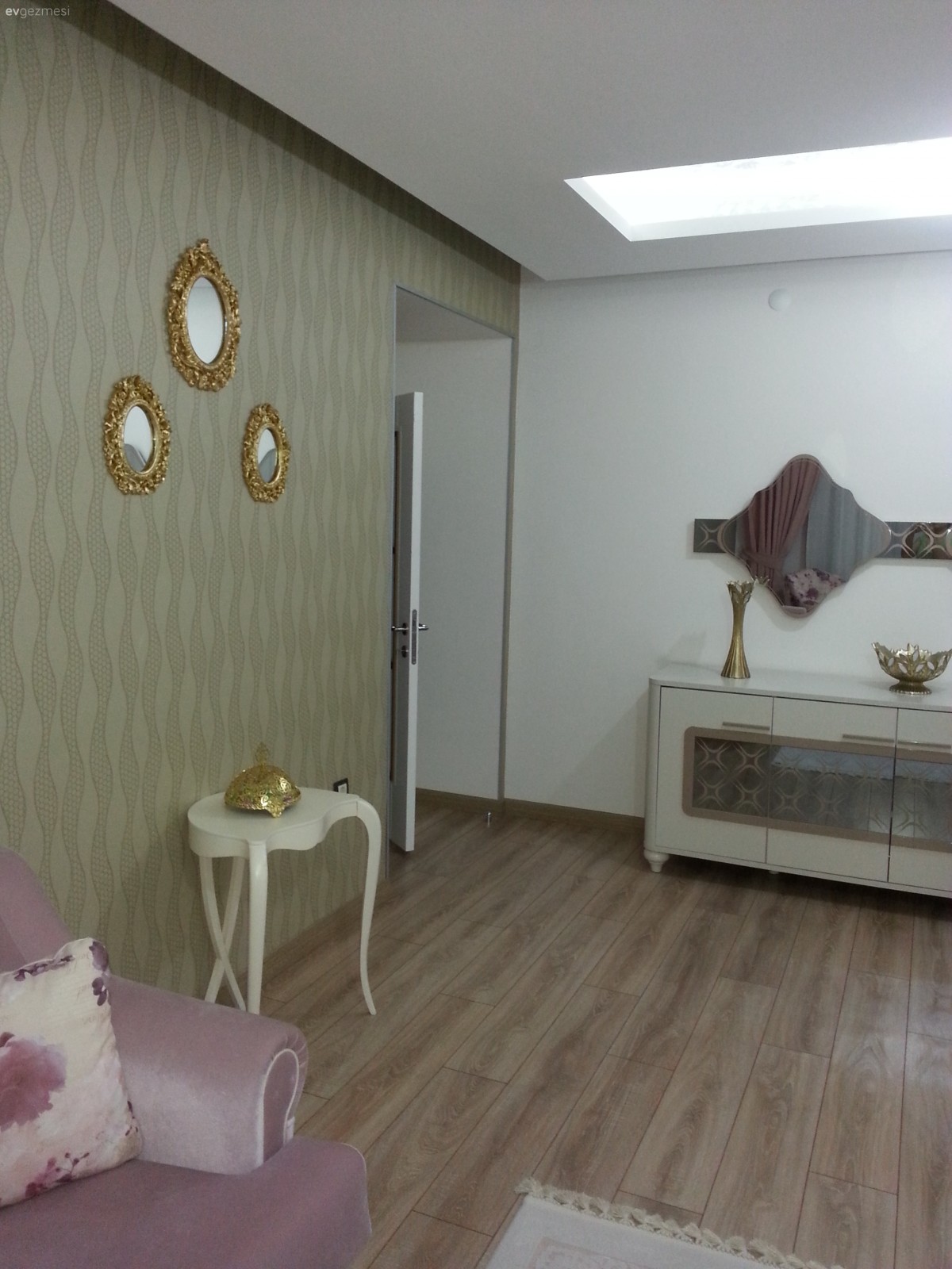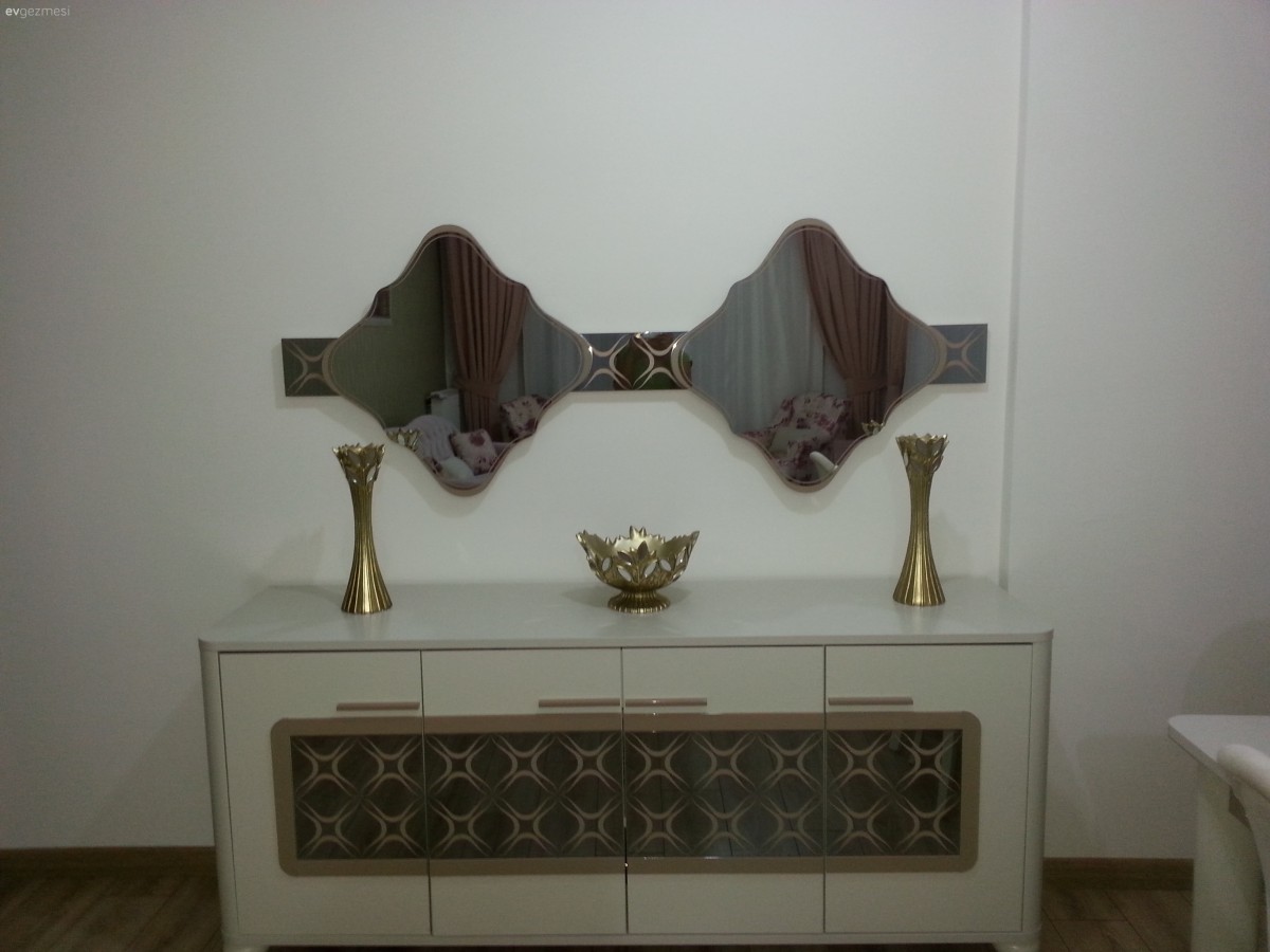 Keske duvar kağıdı kullanmasaydiniz turkuazla veya koyu bi renkle büyük dikdörtgen bi tablo olabilirdi veya ayna tek büyük beyaz renkde bi ayna olabilirdi benim salonla hemen hemen ayni mimar çağırmıştm onun bilgisi ile biraz söylüyorum fikir amaçlı uclu ayna sari degilde beyaz olabilirdi beyaz pembe renkde olabilirdi duvar kağıt olmadan zamanla daha güzel olucak kötüde değil. Güle güle oturun☺