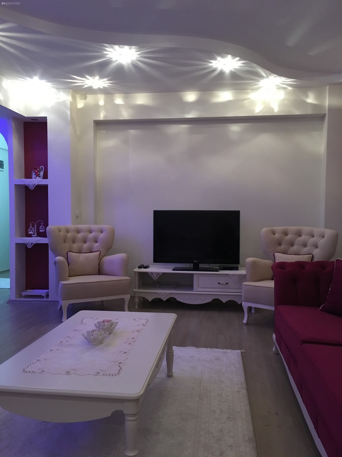 Oturma odasına retro oval sehpalar var ikeadan güzel durur, duvarda tablo vs ,keşke salon tülleri desenli değil de düz olsaydı, o kadar geniş tüllere fon perdeler dar kalmış, yemek yemenin dışında artık masa örtüsü kullanılmıyor, sonra kaldırmışsınız gerçi, yatak odasına abajur şart zamanla tamamlanır tabi güzel bence eviniz:)