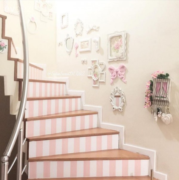 Salon bölümünde ise pastel pembe ve çiçek desenler bizi karşılıyor..