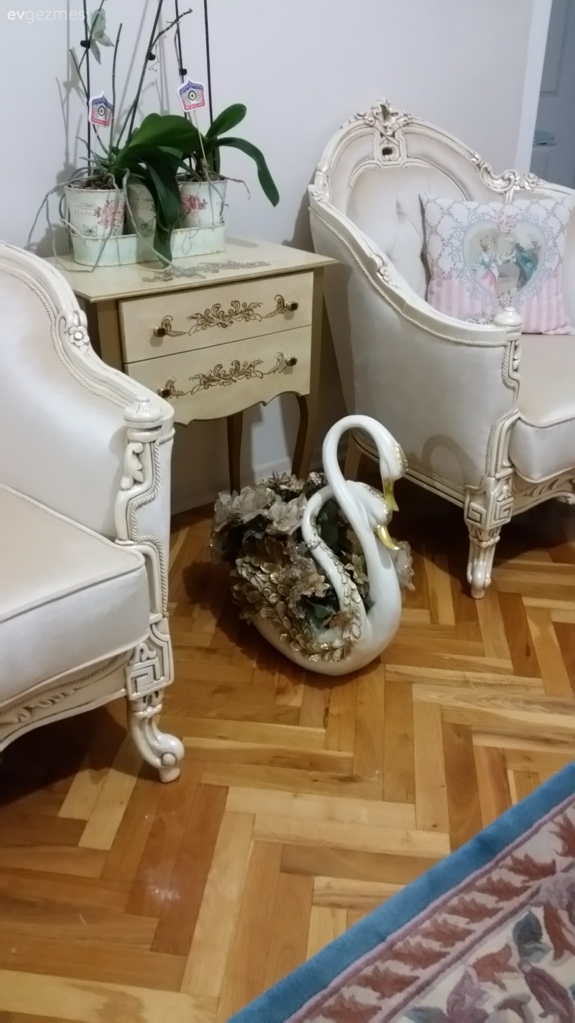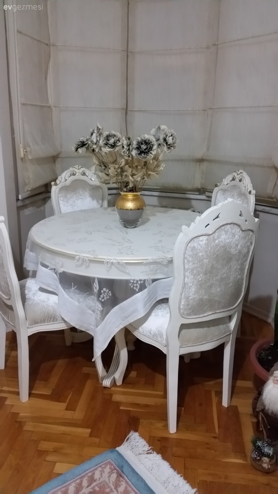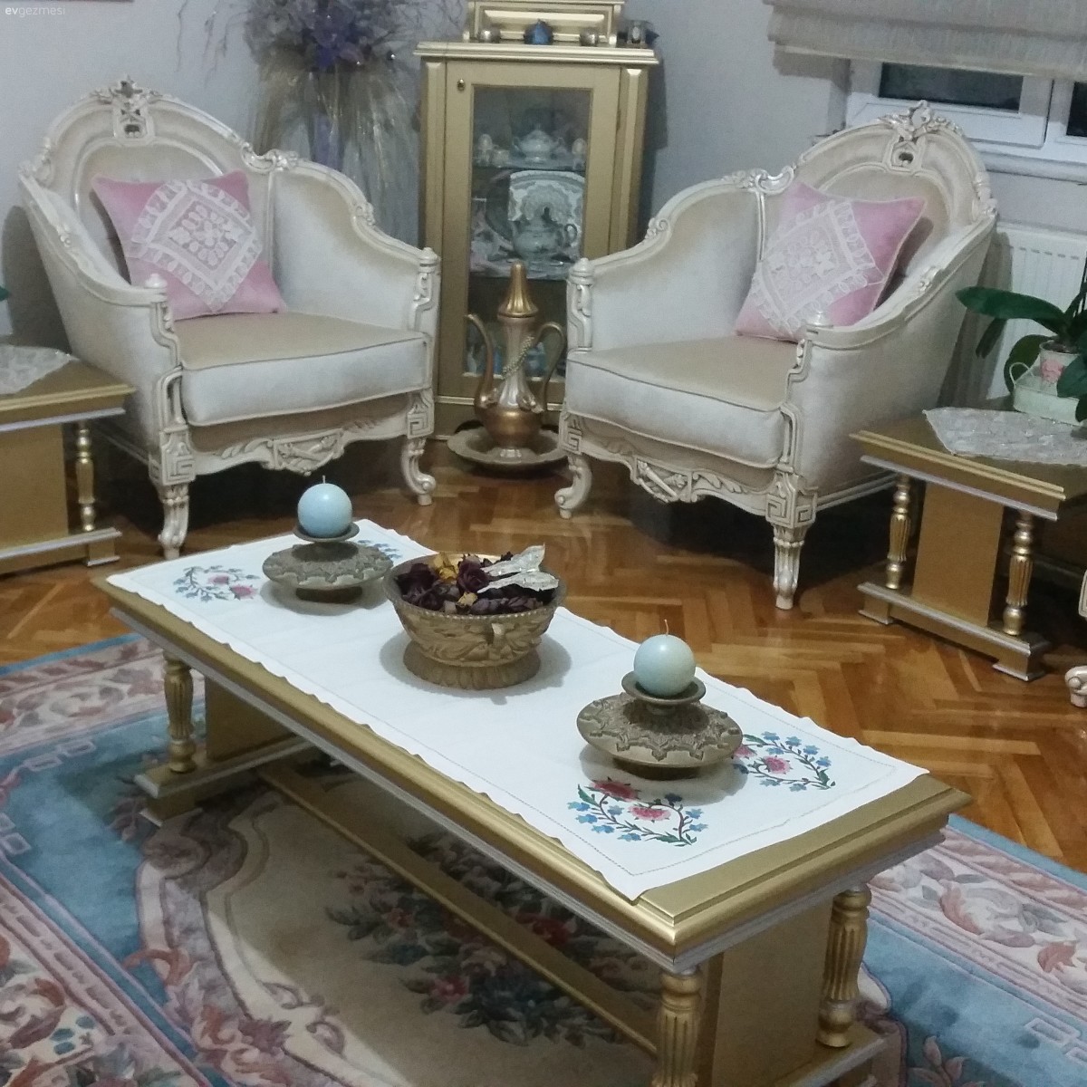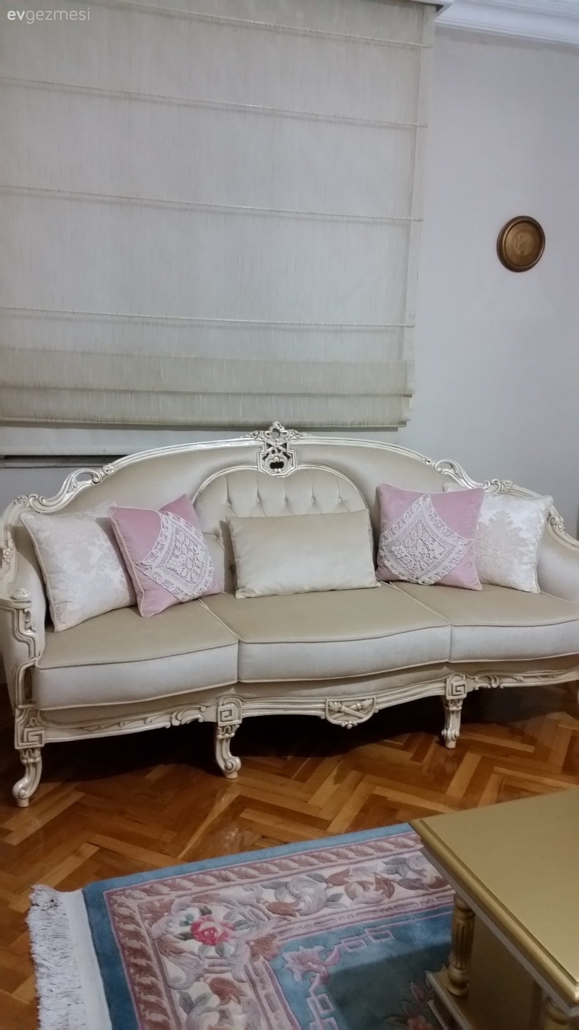 mutfak dolaplarım eskitme krem olsa süper olur ya boyayacağım ya da kapaklarını değiştireceğim kısmetse ;) Mutfağın karşısında oturma odam var .Salon mobilyalarım eskiden kahverengiydi 20 senelik yaklaşık boyattım .Koltuklarım eskiciden alıp boyattım ve kaplattım böyle oymalı koltukları oldum olası seviyordum. Nasıl perde diktirsem karar vermiyorum .Yapıcı fikirleriniz varsa mutlu olurum.