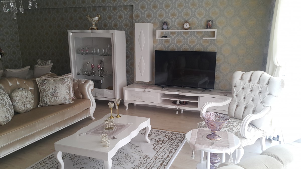 vitrin alınmasaydı keşke ama var şuan vitrinle konsol yer değiştirse yada vitrin tv ünitresinde uzaklaşmalı kapının yan duvarına hafif çapra konulabilirmi yer varsa tbii diğer her şey çok güzel mutlulukla oturun