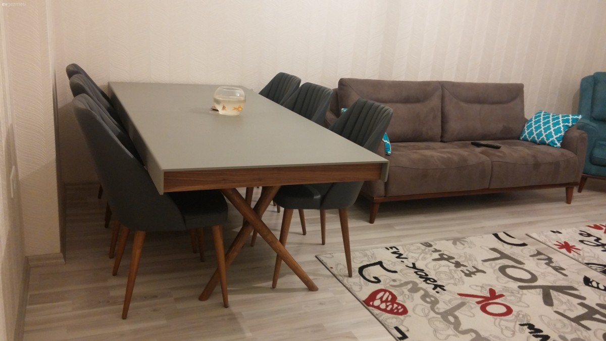 Merhaba,ben de ilk evlendiğimde aynı durumu yaşamıştım.bence bunun sebebi kahve ve mavi olarak iki renge odaklanıp eve başka tonlar katamamaktan kaynaklanıyor.koltuklarınızı ve masa takımınızı gerçekten çok begendim,ayrıca şu an binlerce kişinin evindeki sıradanlaşmış pembeli ev ve shroom gibi durmuyor eviniz,gayet zevkli olduğunuz belli.