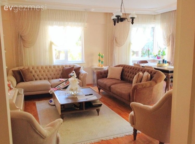 Mobilyalar bencede çok güzel. Duvarların birinde sarı veya turuncu boya kullanabilirsiniz. Koltuklariniza bu tonlarda yastıklar ekleyebilirsiniz eğer duvarı boyamak istemezseniz fon perdeler inizi bu tonlarda yapabilirsiniz. Haliyi da kaldırıp tek tonda dikkati üzerine çekmeyen bir haliyle değiştirebilirsiniz hatta kilim bile kullanılabilir. Güleggüle kullanın mobilyalarınizi