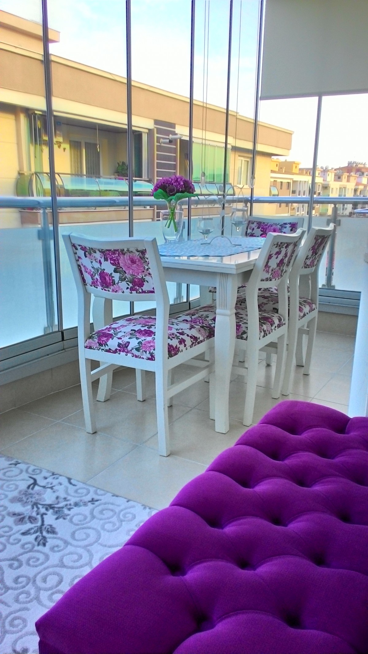 İzmir karşıyaka' da yaşıyoruz. Edebiyat öğretmeniyim.1,5 yıllık evliyiz. Evde zaman geçirmeyi çok seviyoruz. En büyük keyfimiz yemek yapmak ve dostlarımızı ağırlamak Evimiz fazla geniş değil bu nedenle eşya seçiminde titiz davrandık. Konforlu ve romantik bir ev yapmak istedik. Sanırım başardık. Yemek masamızı cam balkonumuza koyduk çok da keyifli oldu:) izmirli bir çift olarak balkonu seviyoruz :)