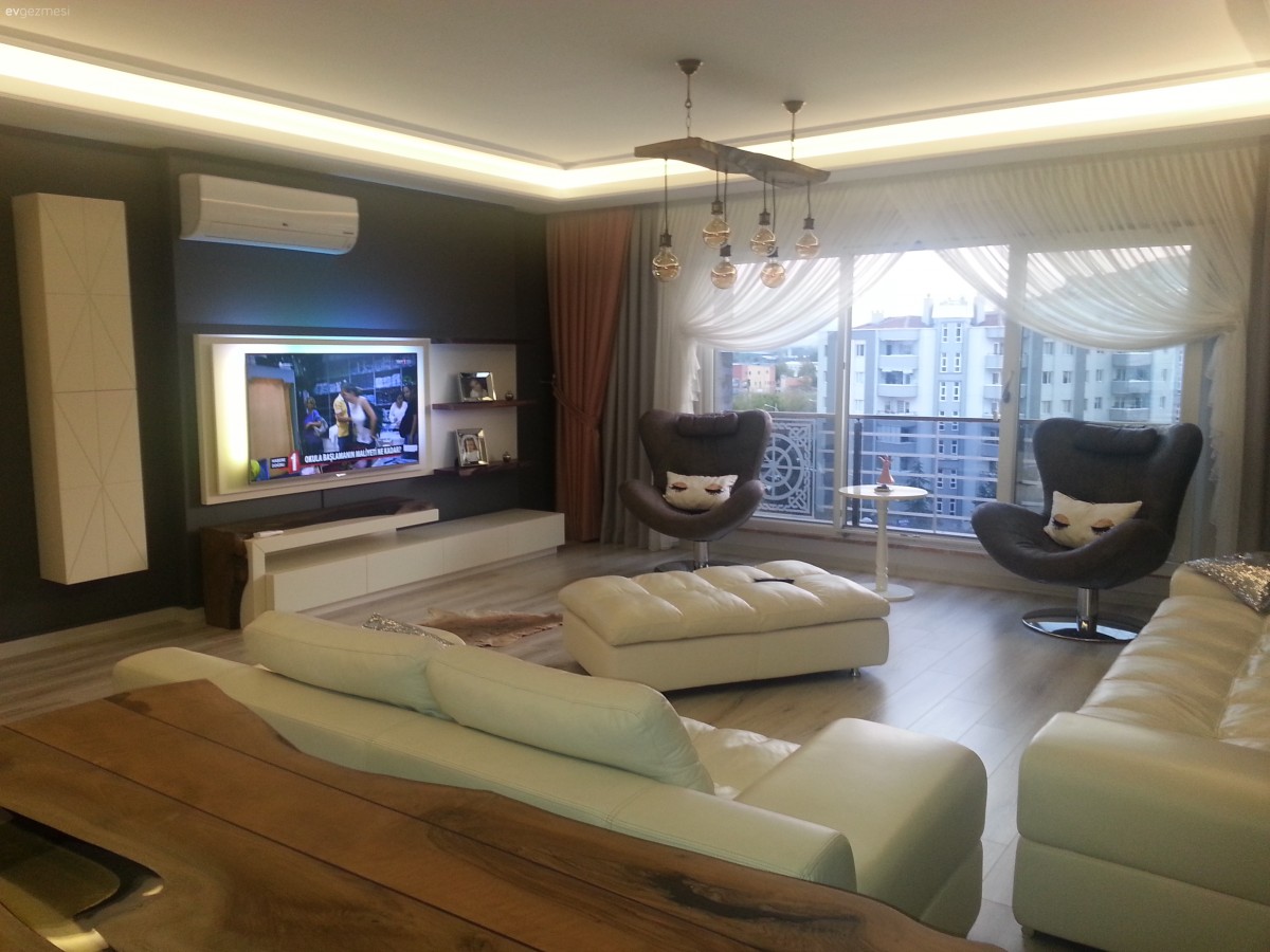 Ev muhteşem eşyalar muhteşem hiç göz yormuyor aksine bakarken dinlendiriyor beyaz koltukların pembe dışındaki başka renklerlede uyum sağladığını göstermiş oldunuz sadece salondaki avizeyi eşyaların içinde sönük buldum sağlıkla oturun