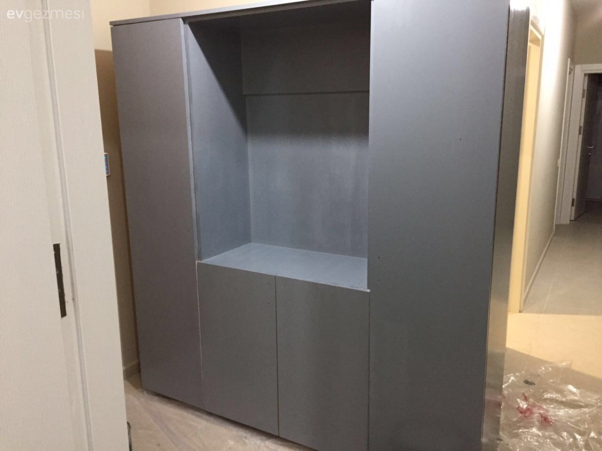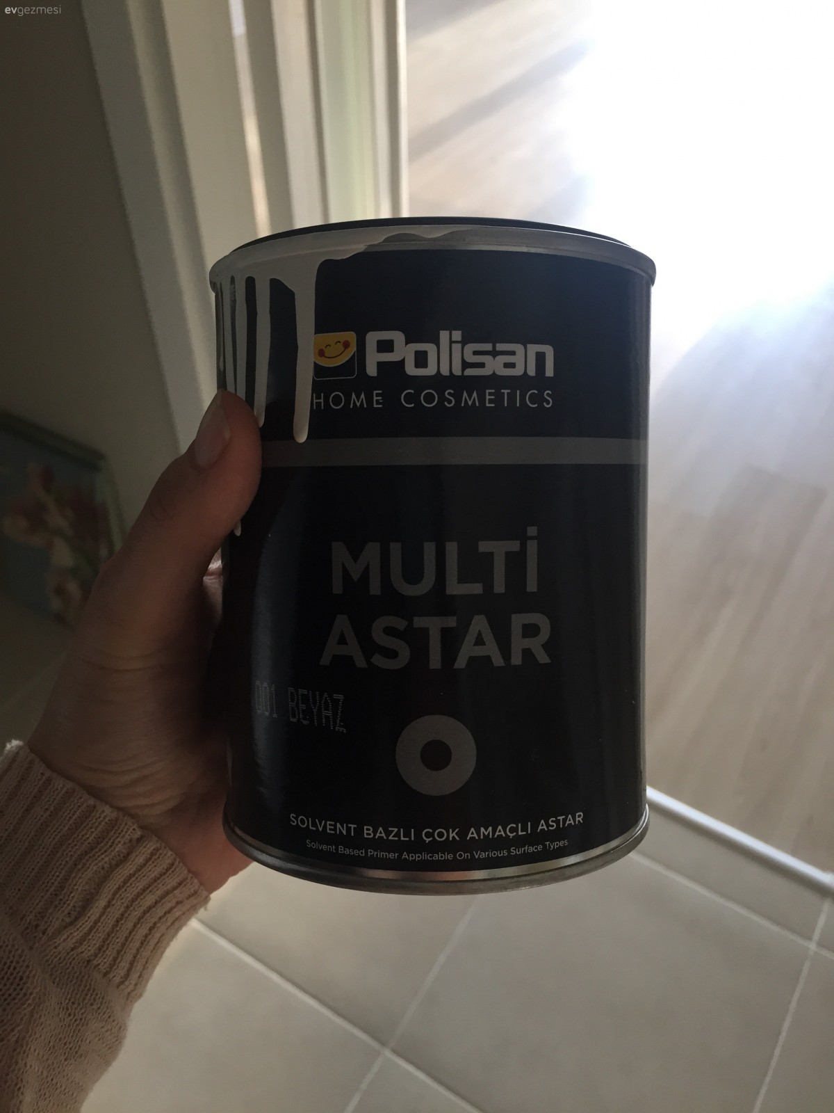 Malzeme mdf kaplama olunca öncelikle astar çekip sonra boya yapmada karar kıldım. Renk mobilyalarıma da uyan gri. Diğer boyalarda sadece beyaz seçeneği var. Dyo'da karıştırma ve istediğin rengi yapma imkanı vardı. Tek sıkıntı Koçtaş'ta en az 2.5 litre olması. Ben 2.5 litre boya aldım, yarısı belki daha fazlası kaldı. Artık başka şeyler de boyamak şart. <br />