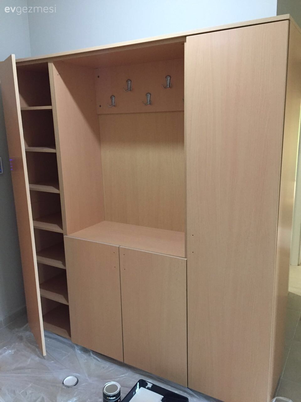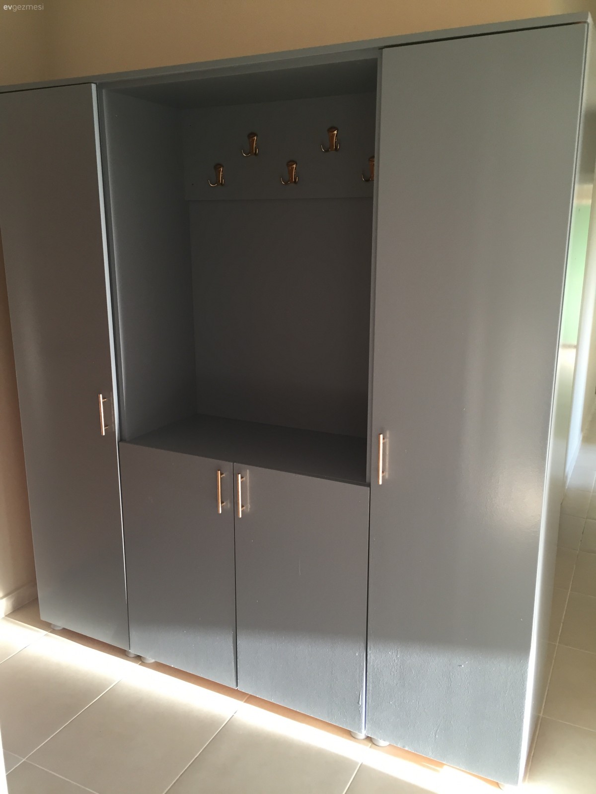 Sıkı bir Ev gezmesi takipçisi olarak sizden cesaret alıp yaptığım projeyi paylaşmak istiyorum. Yeni taşındığım evime gelen rengini hiç sevmediğim vestiyeri boyayıp daha sıradışı hale büründürmek istedim. <br />