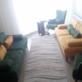 beni yanlış anlamayın ama eşyaları evden sonra mı aldınız? eğer öyleyse yanlış seçim olmuş. odanız dikdörtgen ve o eşyalarla hangi şekli denerseniz deneyin uygun bir oturma şekli olmayacaktır. bir kere tv nin yeri de hiç uygun değil. görüş mesafesi çok fazla ve insanlar yan oturarak izlemek zorunda kalacaklar. buraya benim fikrim bir köşe koltuk uzun duvarlardan birine de büyükçe bir tv ünitesi yakışırdı. bence iki büyük koltuğunuzdan birini başka odanız varsa oraya alın. çünkü her koşulda oturma düzeniniz dar ve dikdörtgen olacak. iki berjeri pencere kenarında birbirine karşılıklı duracak şekilde koyun ortasına bir sehpa yerleştirin sohbet köşesi için çok güzel olur. üçlü koltuklardan birinin tam karşısına da büyük bir tv ünitesi yerleştirin. çiçekler ekleyin dekorunuza. bir kitaplığı şimdiki tvnin bulunduğu yere koyabilirsiniz. odanın dar ve uzun yapısını kırmak için büyük koltuğunuzun hemen üstüne büyükçe bir ayna asın. şimdilik bu kadar. :) güle güle oturun.