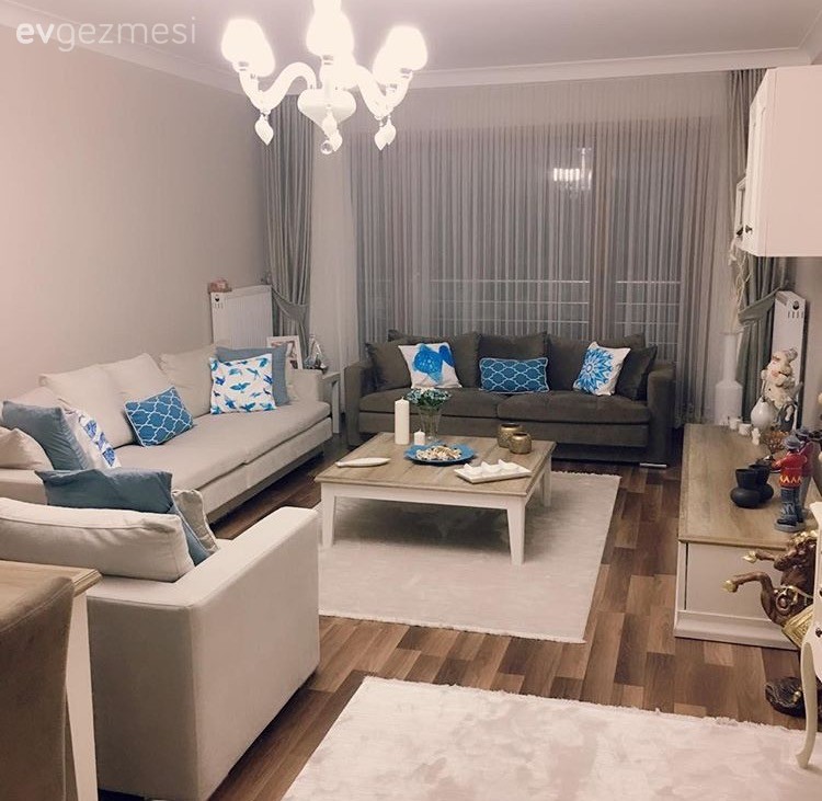 Ev sahibimiz dekorasyona çok ilgili. Monoton bir ev yerine; kendinden bir şeyler kattığı, hayal gücüne yer verdiği, ruhu olan bir ev olsun istemiş. Gözüne batan detaylar küçük değişimlerle düzenlenmiş; kendi üretimi duvar dekorları, el emeği yastık kılıfları, ilginç galeri duvarı tasarımları evin pek çok yerinde Sinem hanımın dokunuşları var.