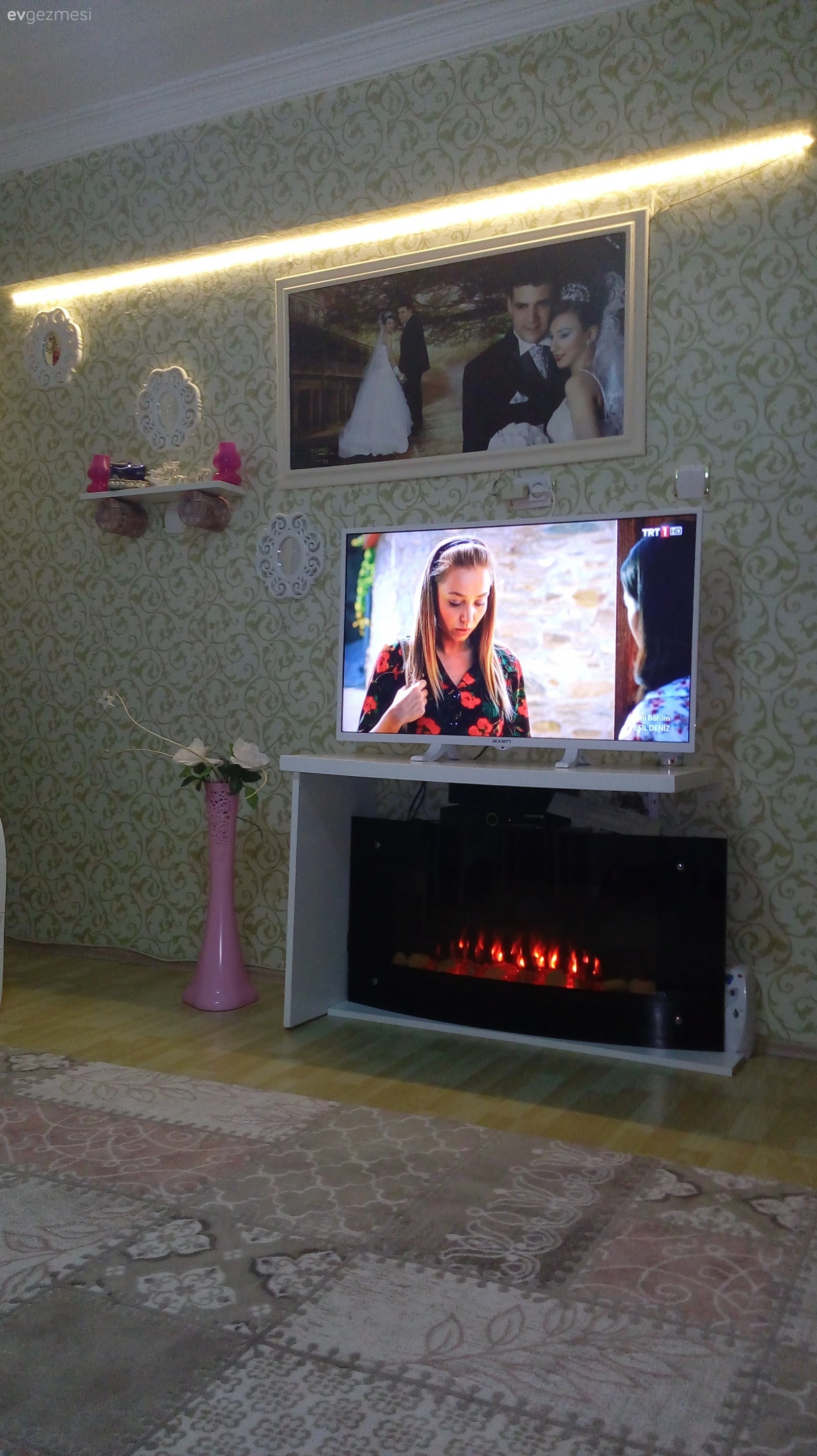 Bütün mobilyalarımızı kahverengiden beyaza kumş kaplamalarınıda kendim yaptığım mobilyalarımız hatta tvi sehpasının plakalarını sküp boyayarak modern tvi ünitesine dnüştürdüm ve rafımızı geri dnüşüm projesi gibi olan boş kapaklı boya kutusuyla desenli peçete dekupajı yaparak renklwndirdiğmiz rafımız duvar kağıdınıda yapışkanlı folyo ile kapldığım let döşediğimiz salonumuz (not: salonumuzun hiçbirköşesine dışarıdan usta eli değmemiştir) not: tvinin altındaki elektrikli şöminedir koçtaştan satın alınmıştır' duvardaki led ışıklandırmada koçtştan satın alınmıştır)