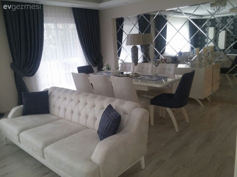 Modern çizgiye yaklaşan chestefield koltuklarını siyah ve beyazın şıklığında tercih eden Melahat hanım, dekorunu stile uyumlu aksesuarlarla tamamlamış..