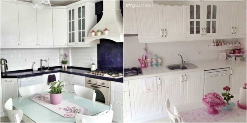 Kullanımında zorlandığı siyah, beyaz parlak kapakları kabarma yapınca; iyi durumdaki dolapları olduğu gibi kullanarak, sadece kapakları değiştirmede karar kılan Arzu hanım, yeni kapaklarında çok sevdiği beyaz renge ve country esintilere yer vermiş.