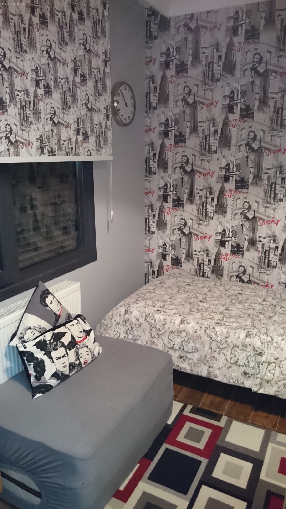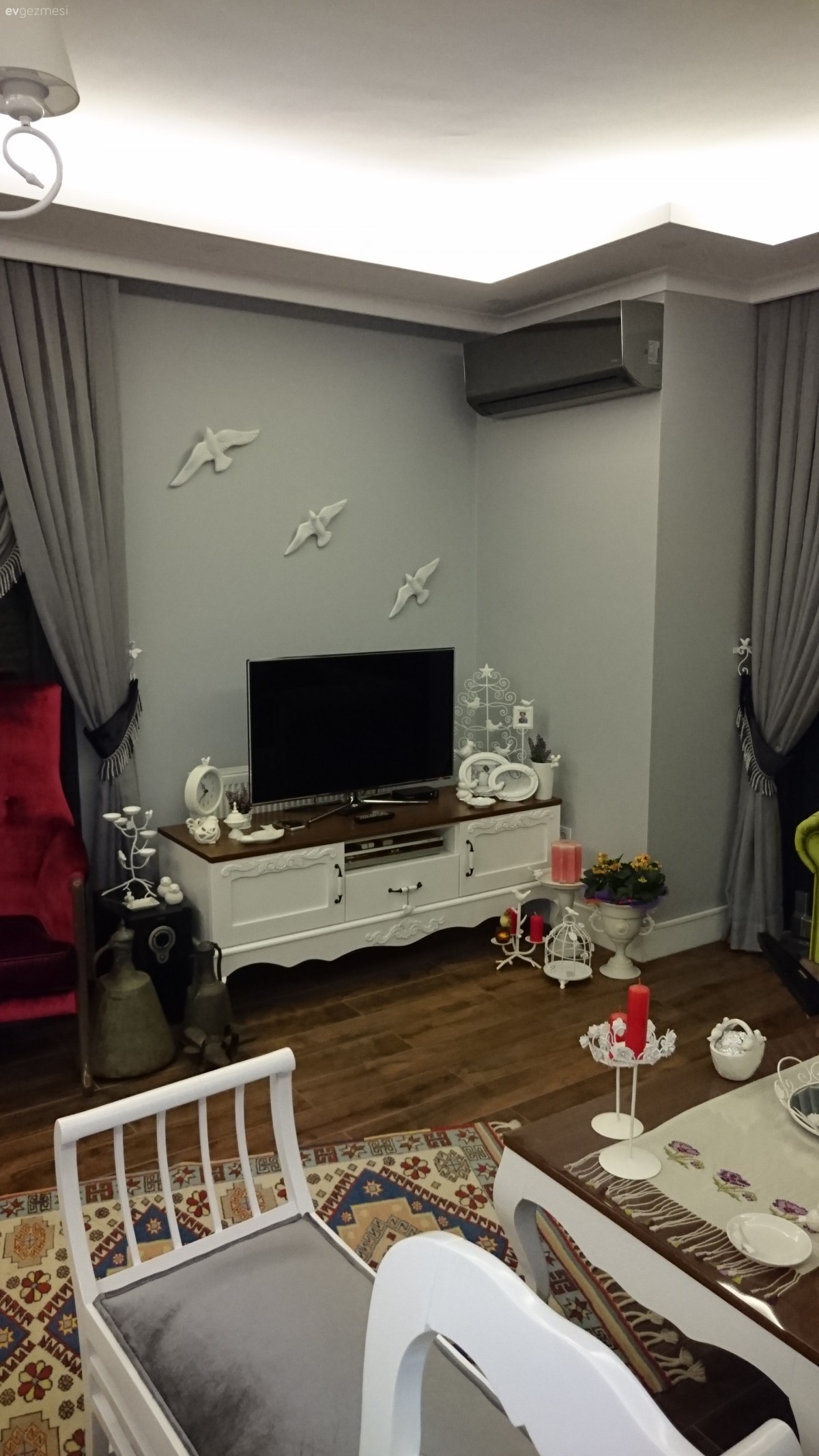 Salonun oturma bölümü çok güzel diğer bölümde çok fazla aksesuar kullanmışsınız ayrıca diğer odalarda kullandıgınız popard perdeler ve duvar kağıdı cok fazla göz yorucu yinede güle güle oturun
