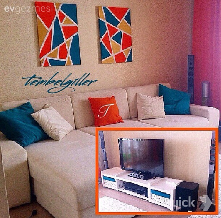 Tembelgiller'in sadece balkonu değil, oturma odası dekoru da mevsimlere, modaya veya sadece ev sahibimizin ruh haline bağlı olarak sürekli bir değişim içinde..
