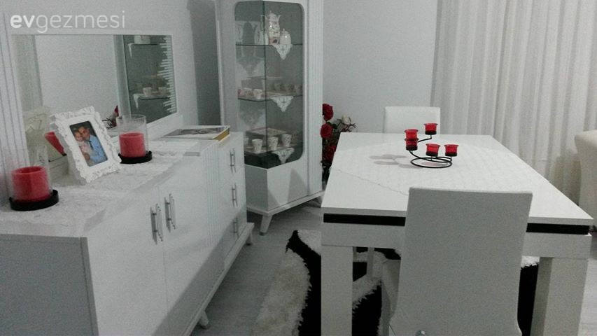 Evin iyi durumda parçaları, biraz bakımla değerlenmiş; mobilyalar küçük değişimlerle yeni hayat bulmuş. Kapıların boyanması, mobilyaların yapışkanlı folyo ile kaplanması, banyo dolaplarının tamamı ve küçük dekoratif objelerin büyük bölümü ev sahiplerimiz ellerinden. Buyrun konuk olalım..