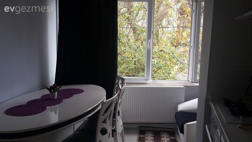 Metrekare olarak küçük evlerinde, cam ve kapıların fazlalığı eşya yerleşimini problem hale getirmiş. İşe balkonu iptal edip, mutfaklarına ekleme yaparak başlayan ev sahiplerimiz, mutfakta ferah ve kullanışlı bir alan oluşturmuşlar.Mutfak şimdilik kapısız, ancak yakında yine alanı sıkıştırmadan bir sürgülü kapı ile mutfağı, oturma alanından ayırmayı planlıyor ev sahibimiz..