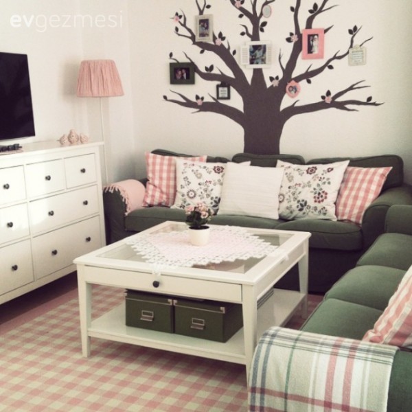 Pelin Hanım, boşverin pembeyi, çok çok şık bir salonunuz var. Dilerseniz ileride birkaç değişiklikle zaten renk değişimi yapabilirsiniz. Pembe çiçekli ev çok görüyoruz, bu ev, hem modern, hem şık. Güle güle oturun.
