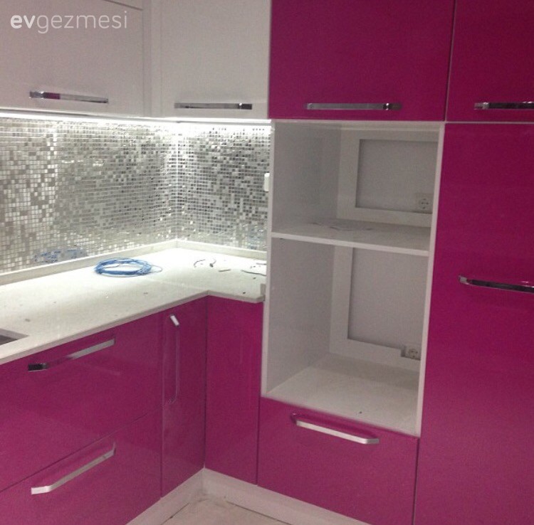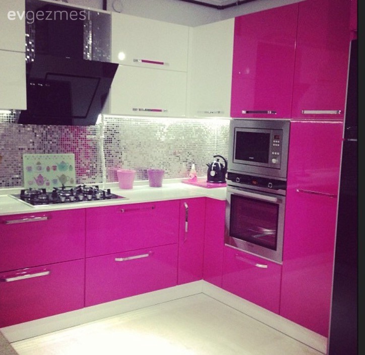 Pembe beyaz mutfak ilk kez görüyorum :)) cok sirin olmus yaaa ???güzel kullanmissiniz..güle güle oturun