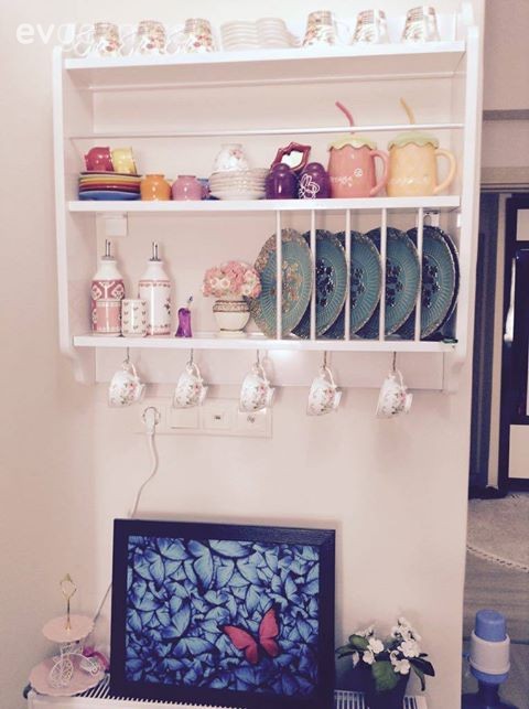 Evinden kareleri de ileride paylaşacağımız Seda hanım, salon duvarında Ikea'nın uygun fiyatlı parçalı aynalarını çift taraflı bant yardımıyla uygulamış. Ikea Sörli aynalar 4'lü paketler halinde satılıyor. 20x20 olanları 4 tanesi 17.99 Lira.
