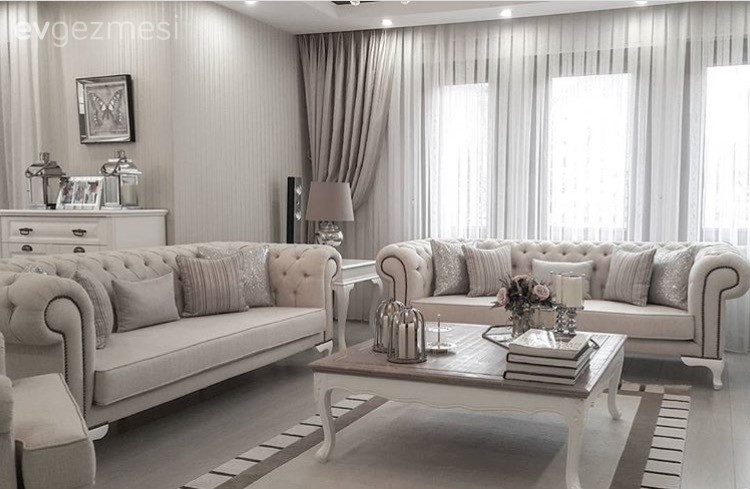 Ee tabi halı, aksesuarlar, kırlentler ve duvar dekorları da salonun yeşil ve beyaz renklerine uyumlu olacak şekilde Leyla hanım tarafından değiştirilmiş..