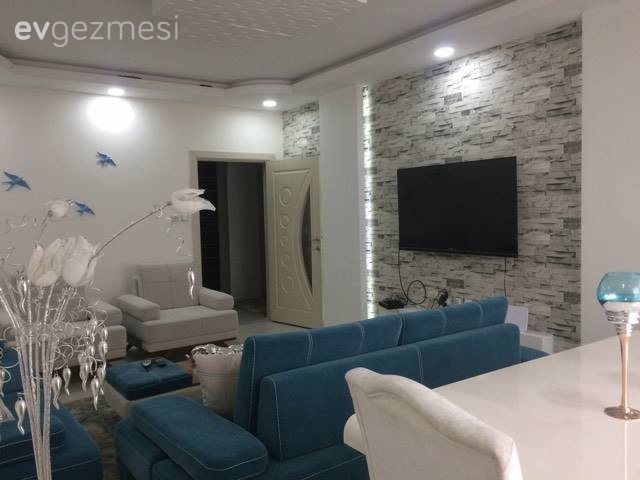 Iğdır'da yaşayan Defne hanımın modern stilde, konforlu ve huzur verici evinin konuğuyuz. Abartıdan uzak bir stili tercih eden ev sahibimiz, hem salonu, hem oturma odasında kullanıldığı alanlara sakin bir hava veren mavi vurgusuna yer vermiş. Enerjik bir renk olan kırmızı ise, modern mutfak dekoruna heyecan katıyor. Buyrun konuk olalım..