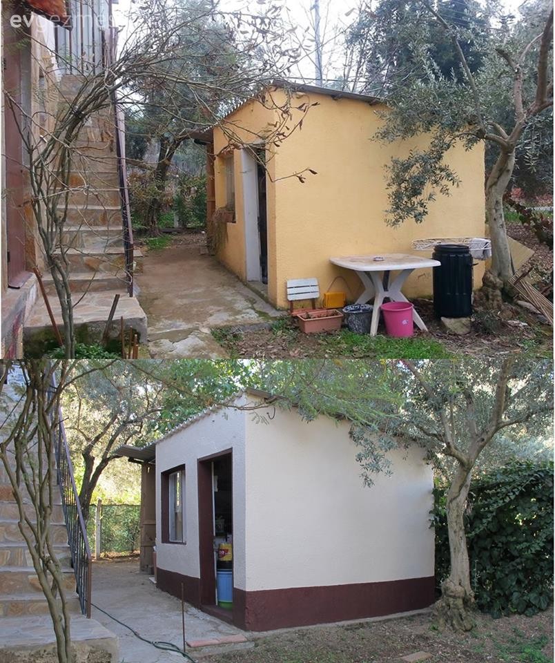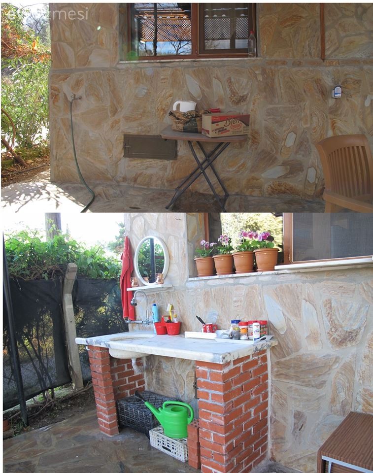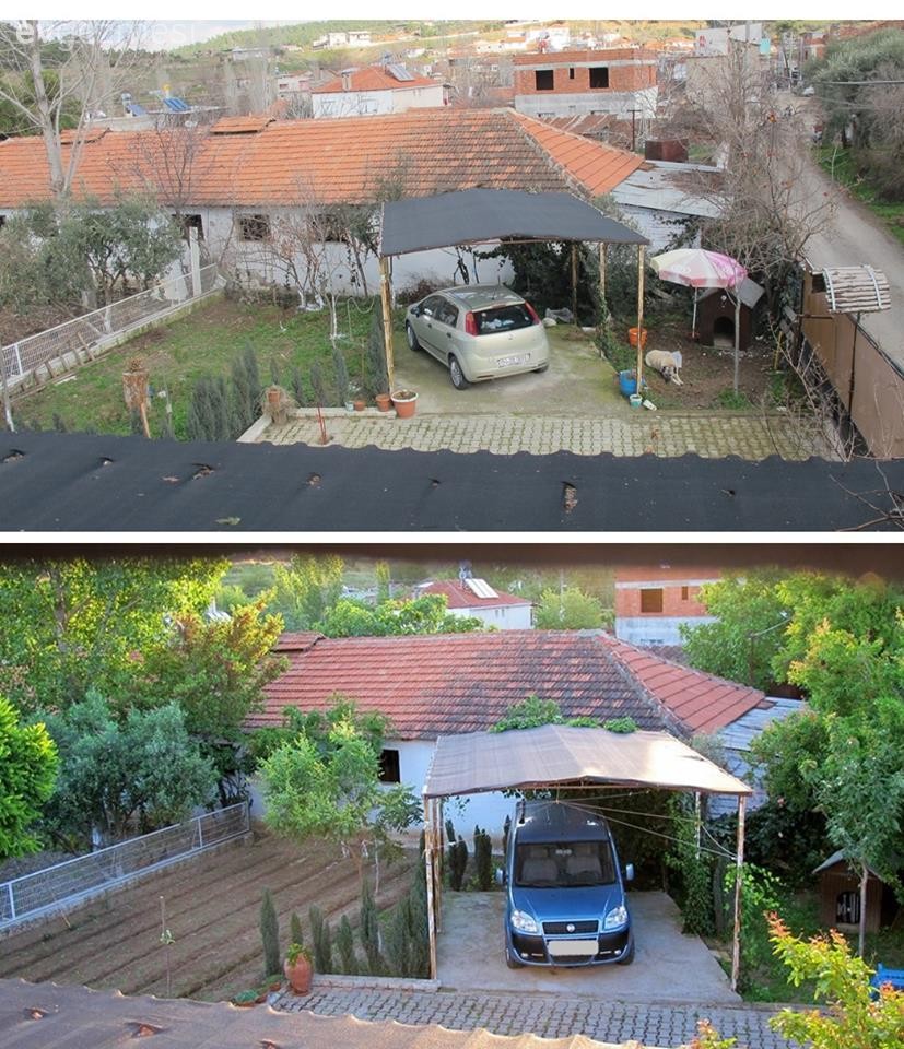 Kemalpaşa'da 2 dönümlük bu arazi, içinde de bir köy evi bulunan bu yerin ilanını internette gören ev sahiplerimiz, almaya karar verip; aldıklarından itibaren 3 senelik bir süreçte, bahçeden, evin dekoruna, boruların ve çatının tamirinden, kalorifer döşenmesine her detayını kendileri emekleri ile yapıyorlar.