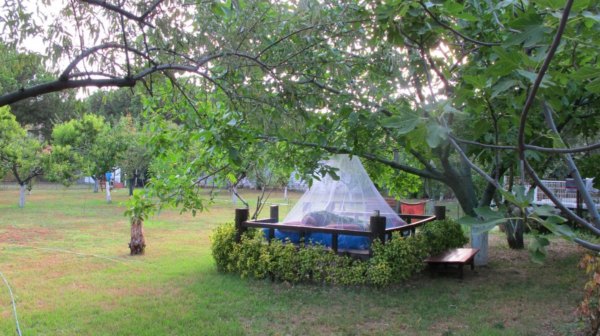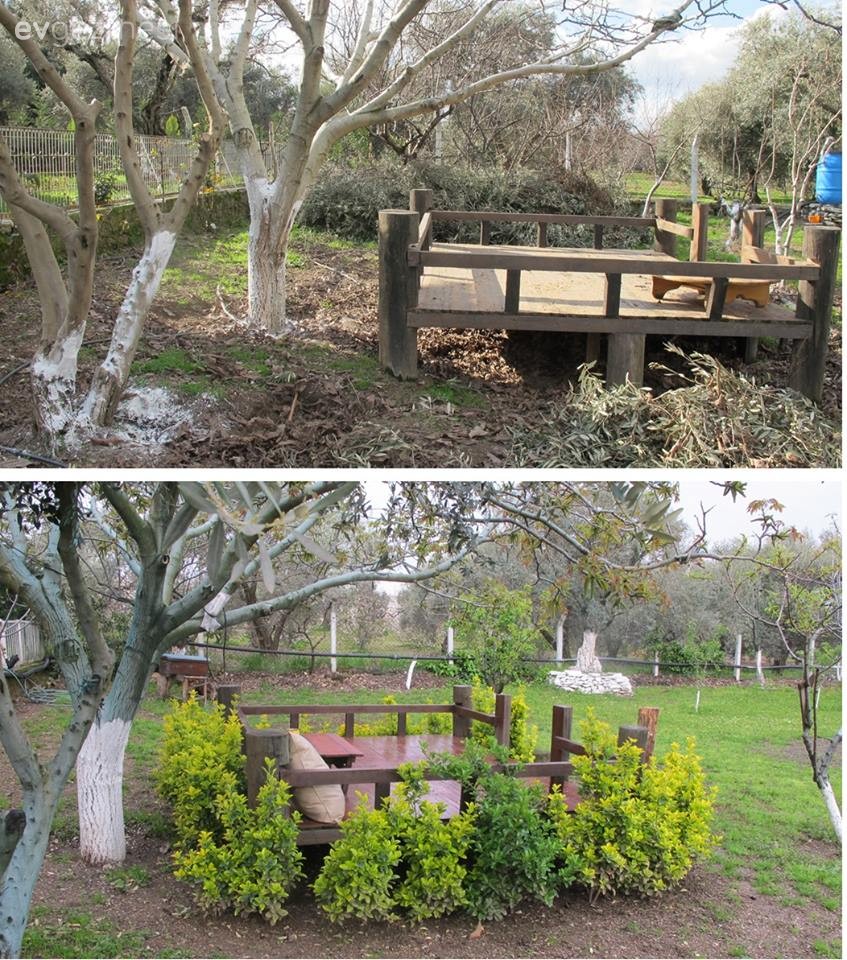Evlerini sadece tatillerinde kullanıp, doğanın ve yeşilin keyfini çıkaracakları bir yer olarak görmeyen ev sahiplerimiz, köy hayatına ayrıca ilgi duyuyorlar. Bahçelerine 130 meyve ağacı dikmişler; 1 horoz, 1 tavukla başladıkları kümesleri şimdilerde 51 tavuk barındırıyor. Zeytinleri, zeytinyağları, tarhanaları, reçelleri ve turşuları, kısacası mümkün olduğunca her şeyi kendileri öğrenip, üretmeye çalışıyorlar.. Neredeyse her ay başka bir ağaçları meyve veriyor; mevsimin meyvesini yiyip, fazlalıkları komşularıyla paylaşıyor, takas yapıp, komşularının ellerinden bazen buğday, bazen salçayla mükafatlandırılıyorlar..