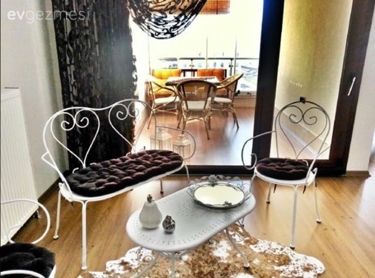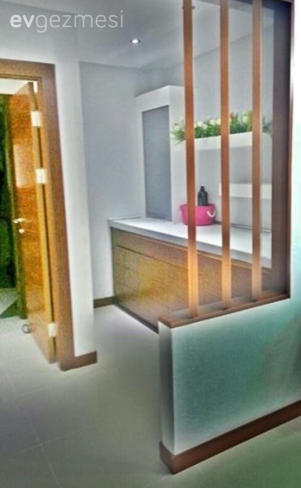 Asma tavan ve aydınlatmalar yine evin hareketli görünümünü tamamlıyor. Mutfak seperatörü olarak da geometrik çizgide bir seperatör tercih edilip, bütünlük yakalanmış. Buyrun konuk olalım..