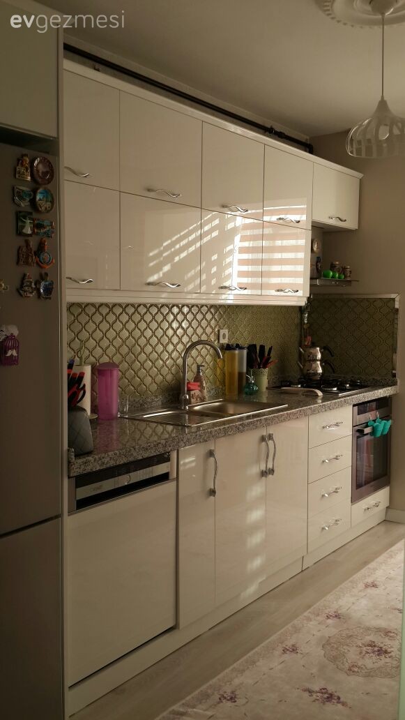 Mudo tarzı aksesuarları tercih edin bence,birde sizebtavsiyem.ünitenizin kapaklarını dolap kaplama malzemesi ile beyaz krem yada evinize uygun bir renkte kaplayıp,ünitenize hareket katın ve aydınlatın