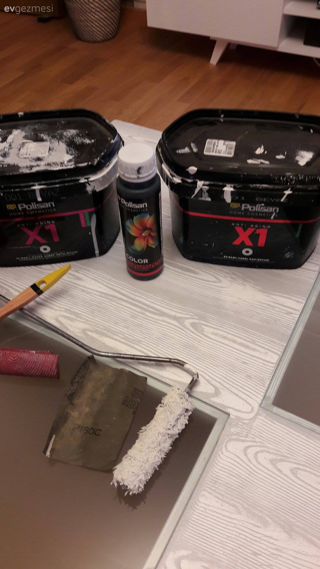 180'lik zımpara ile hafif zımpara yaparak başlamış Zeynep hanım. İşlem beklediğinden çok daha hızlı ve kolay olmuş. Sonrasında mor Polisan X1 boya ile birkaç kat, kırmızı Polisan X1 ile bir kat boyanmış. Mor boyanın kapatıcılığı yüksek, en sonda uygulanan kırmızı ise parlak bir görünüm sağlamış.