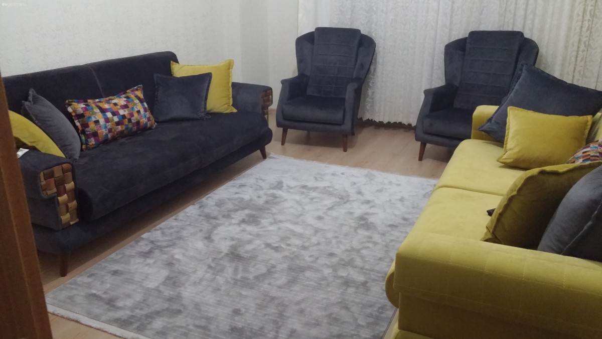 Madem kanatlar sarı, o halde halı ile aynı renk detaylı, ahşap ayaklı bir üniteye ne dersiniz? Ya da koyu renk koltukların çok açık bir tonu, yine ahşap ayaklı?<br /> Güle güle kullanın, çok beğendim takımınızı ???