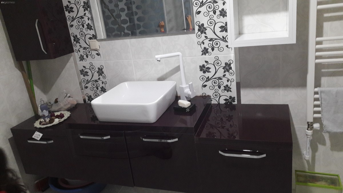 İnstagram kullaniyorsaniz eger orada havluluklardan cok cesit bulabilirsiniz ayni sekilde samdan hali paspasida bakin derim <br /> Bence paspasta siyah olmaz eger renk tonunu birebir uyduramiyorsaniz beyaz kullanabilirsiniz bence <br /> Tuvalet masasindan kastim dresuar gibi birseydi ama cok dolapla kaplamis olursuz o fikirden vazgectim :))) <br /> Buyuk boy mum olabilir gibi iki tane yan yana ya da metal fener falan