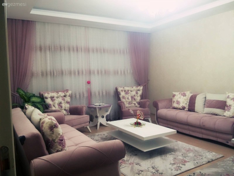 Güle güle kullanın öncelikle :) Bana göre çok açık ve desensiz bir gri halı olabilir ve biraz da simli veya parlak olabilir . Ama açık renk olması ana kural . Bu odaya koyu renk halı , koltukları kapatır. <br />