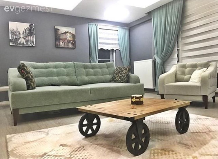 Salon çok güzel olmuş doğal ahşap ve mor rüya masal gibi birşey oluşturmuş güle güle oturun