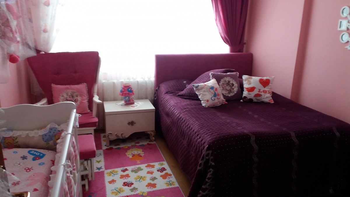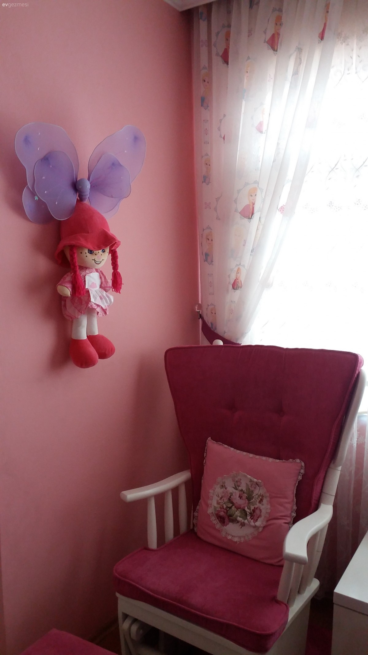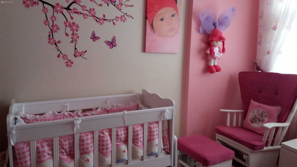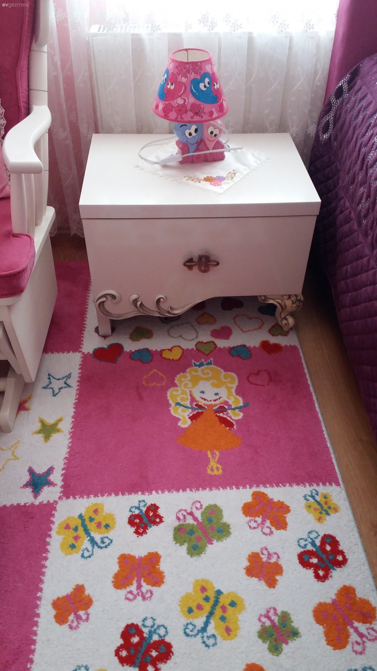 1.5 yaşındaki kızımın odası.Kızımın gardrobu tamamen geri dönüşüm annemin Vitrini gardroba çevirdim.Halılar buyük olan festival küçük olan English home avize ve duvardaki stik evidea sitesinden duvardaki atık