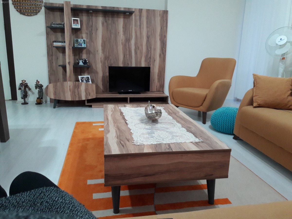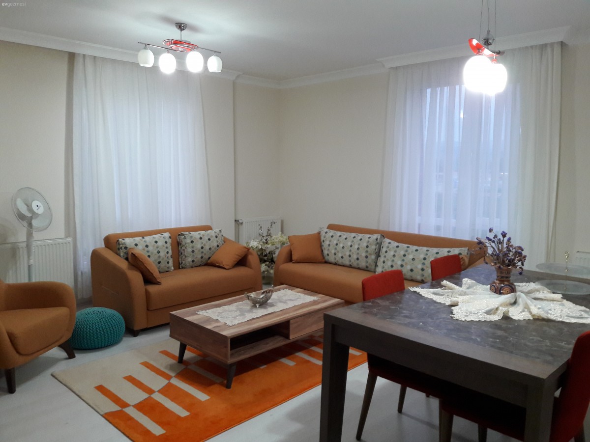 Sıcak renkleri dengeleseniz yeter bunu da perde ve halı ile yapabilirsiniz. Kırlent de olabilir.turkuaz ya da mavi tonları ya da yeşil seçimi doğru olur. yerinde olsam sandalyeleri de kaplatırdım turuncu kırmızı fazla sıcak tonlar.