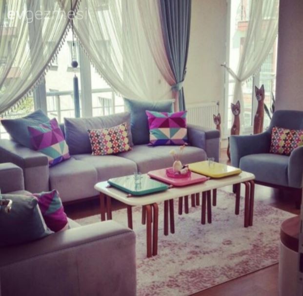Renk uyumlari falan guzel ama salonda yerlesim yanlis bence ve gereksiz alinan mobilyalar var.