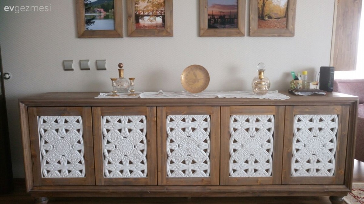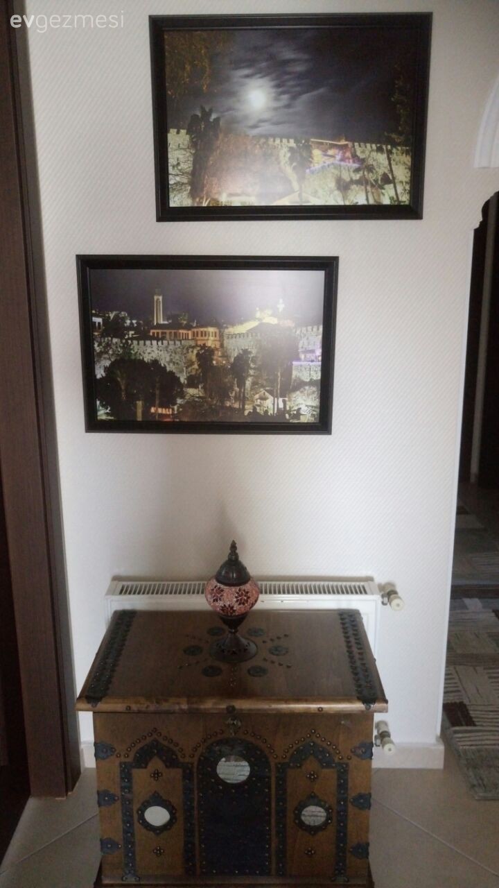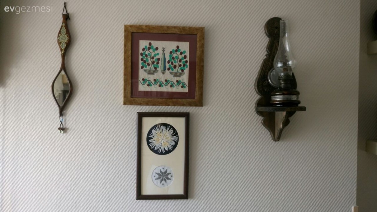 Duvarlardaki fotoğraflar, kendi gezileri sırasında çektiği fotoğraflar. Dekorunda kullandığı objelerin büyük bölümü ise ailesinden hatıra.. Bakırlar aile yadigarı, dikiş makinesi ise kayınvalidesinden. Evin en çok dikkat çeken parçalarından biri olan aynayı yapmak için, ailelerine ait bir evin eski kapısını değerlendirmiş ev sahiplerimiz. Buyrun konuk olalım..