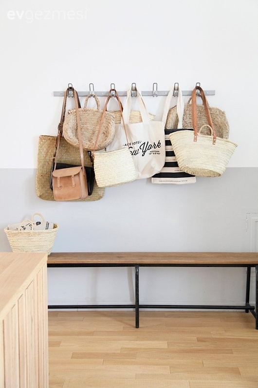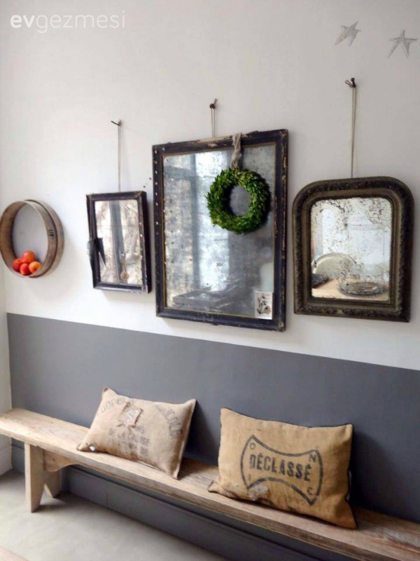 İki renk duvarlarda, illa ki bir renk koyu veya parlak renk olma zorunda değil. Uçuk gri ve beyaz ikilisi, bu antrede, farklı bir görünüm oluşturmuş..
