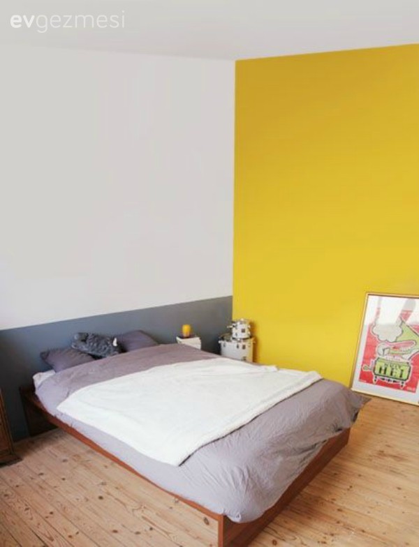 Yatak başlığı yerine de bu boya fikri kullanılabilir..