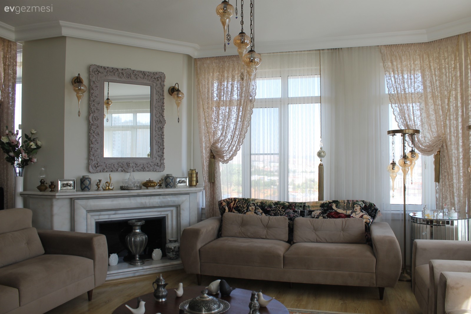 demet hanım eviniz ve ev dizaynınız çok güzel güle güle oturun haddim olmayarak bir konuda fikrimi belirtmek istiyorum şömine üzerindeki ayna güzel salonunuzun dekoruna uyumlu değil ve fazla ayna kullanılmış onun terine bütünlüğü tamamlayan bir tablo kullanırsanız salonunuzu ve şöminenizi taçlandırmış olursunuz bu benim nacizene fikrim