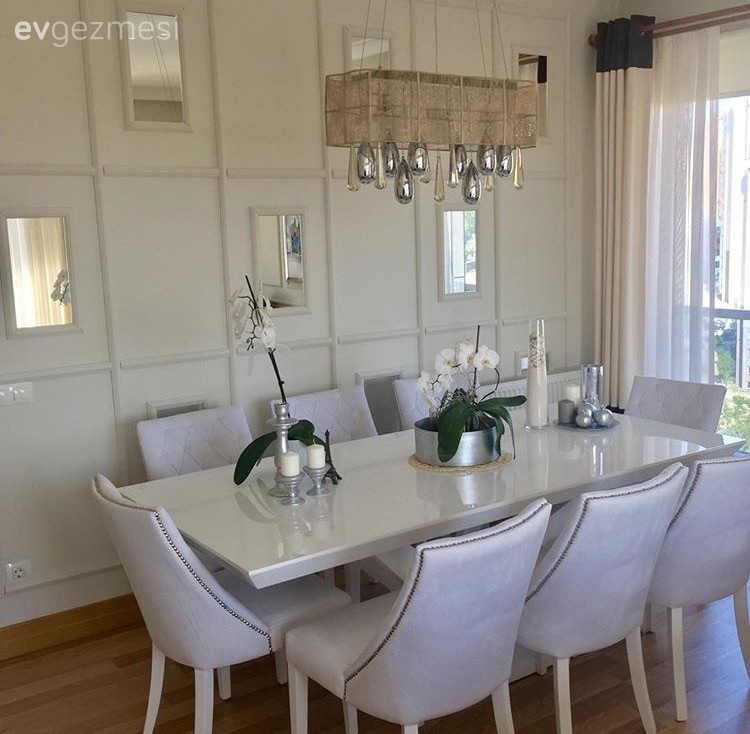 Fazla renk çıkışlarından kaçındığı klasik salonuna, yemek bölümü duvarında uyguladığı büyük boyutlu baklava ayna ile göz alıcı bir hava katan Hilal hanım, salonundan tadımlık kareleri bizlerle paylaşıyor.