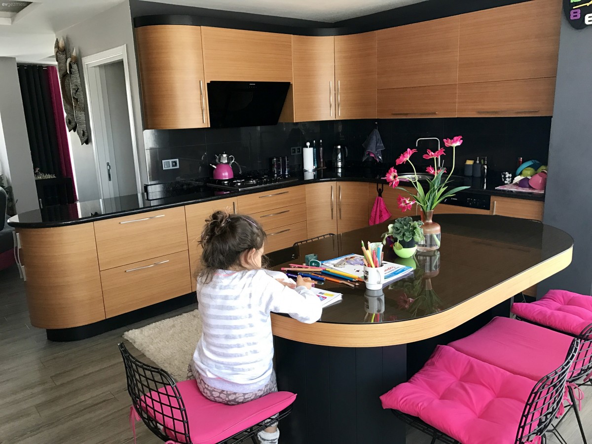 Bu arada evet mutfağım görenleri hayran bırakıyo ( beni de bıraktı zaten ?) özel tasarım , hazır mutfak değil, bir markası yok yani malesef, gerçek ağaç kaplsma kullandık... adanada smart devor yaptı , bütün mobilya vr shşap işlerimin hep tasarlanıp çizilip özel yapıldı ...