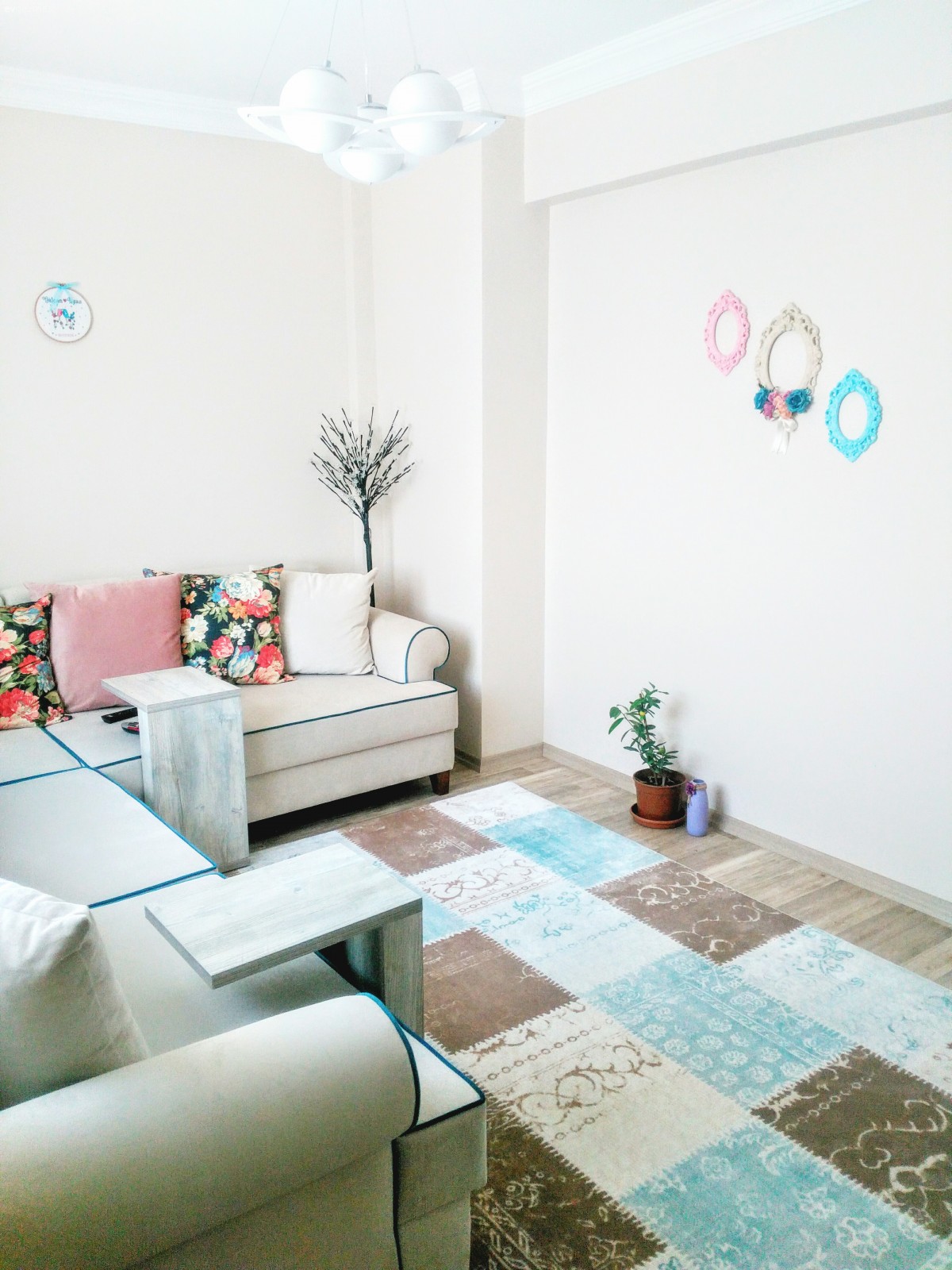 Aynen dediğiniz gibi; renkli ve abartıdan uzak olmuş. Yalnızca salon duvarınız biraz boş geldi gözüme. Güle güle oturun : )