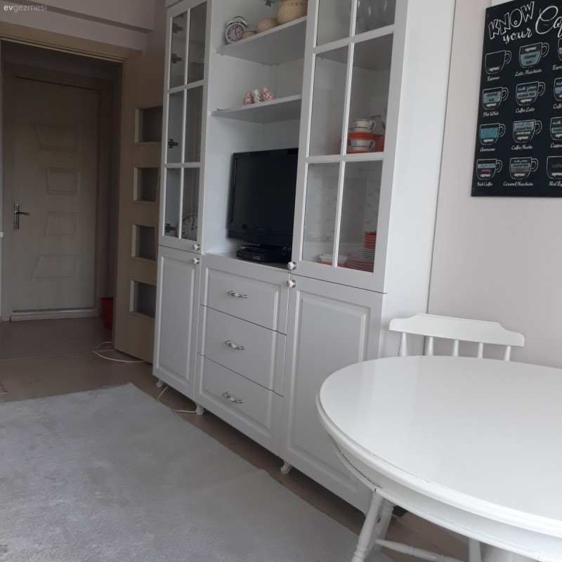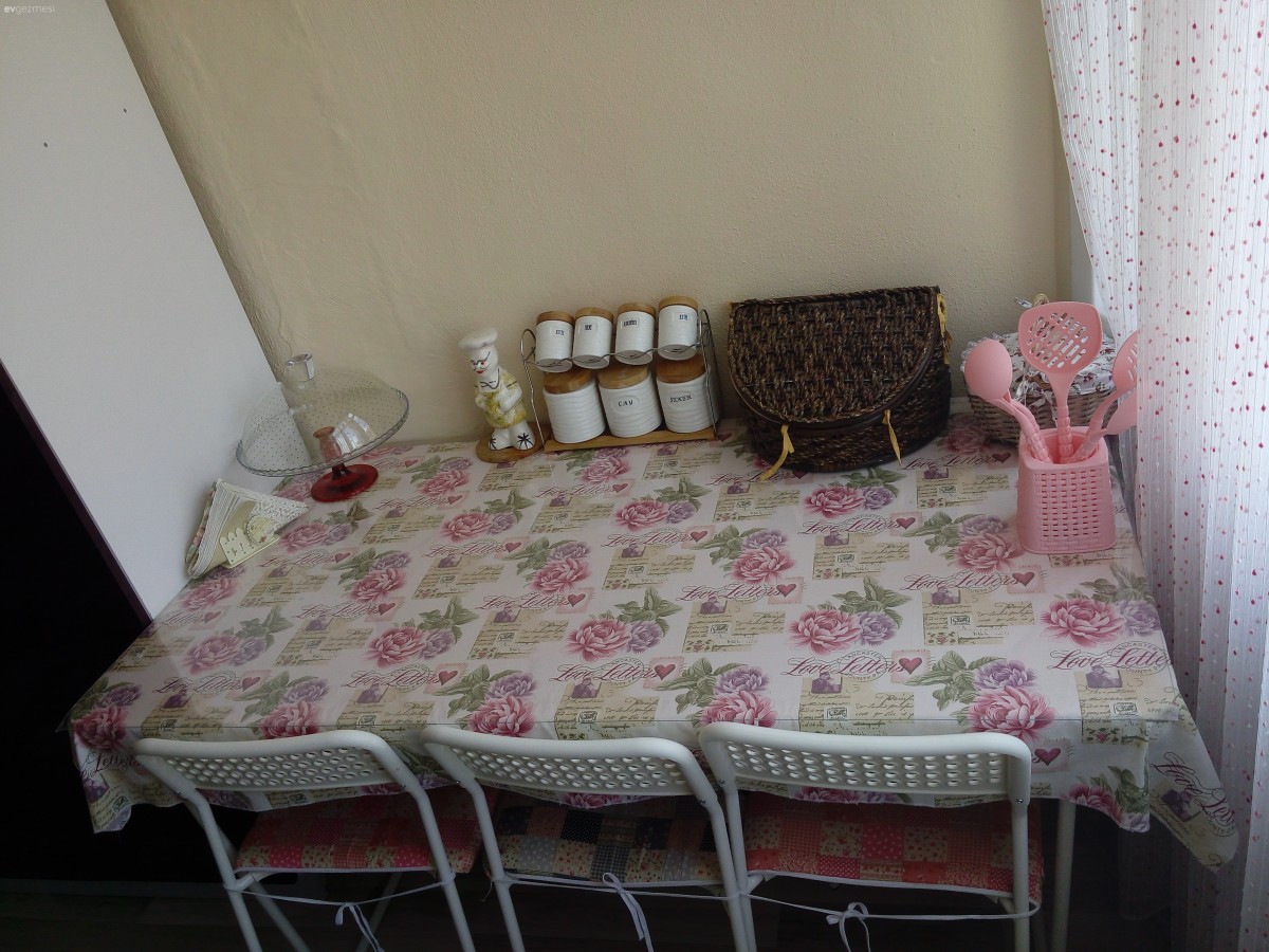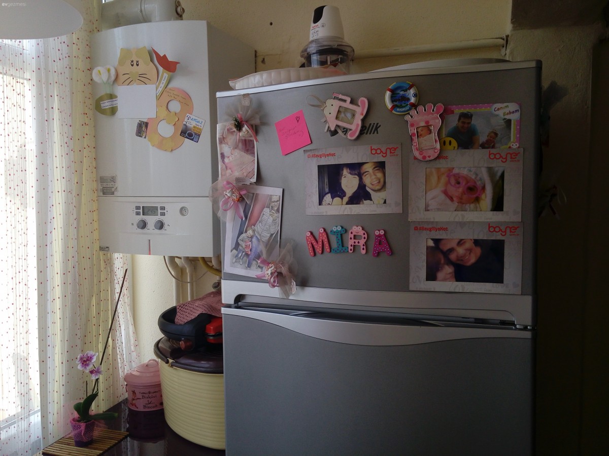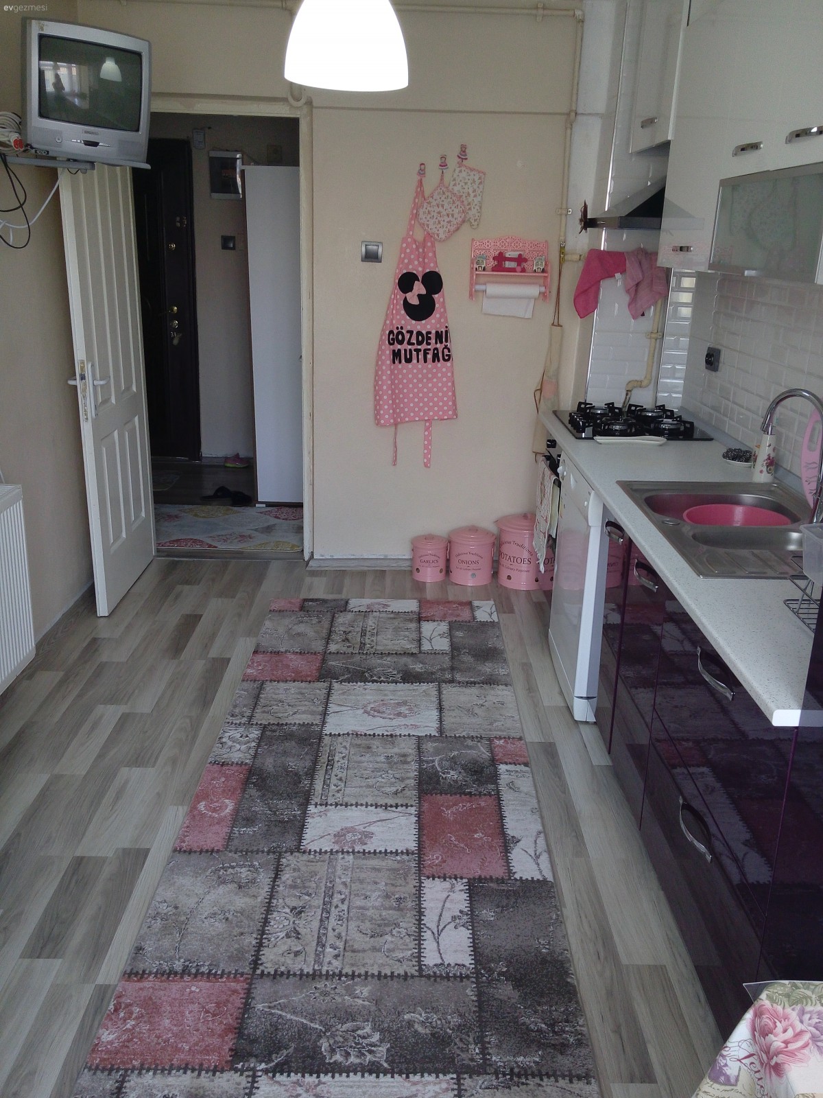 Güzel günler de kullanın.bi tavsiyede bulunmak istiyorum..masanin yerine buzdolabını geçirin. Masayı pencereye paralel koyun veya tezgahın karşısına geçirin.dogalgaz borunuzu beyaza boyayin ve girişteki pembe kutuların olduğu alana dar bir dolap veya dresuar alabiliseniz hem ölü alan kapanır hemde tezgah alanı sağlamış olursunuz...