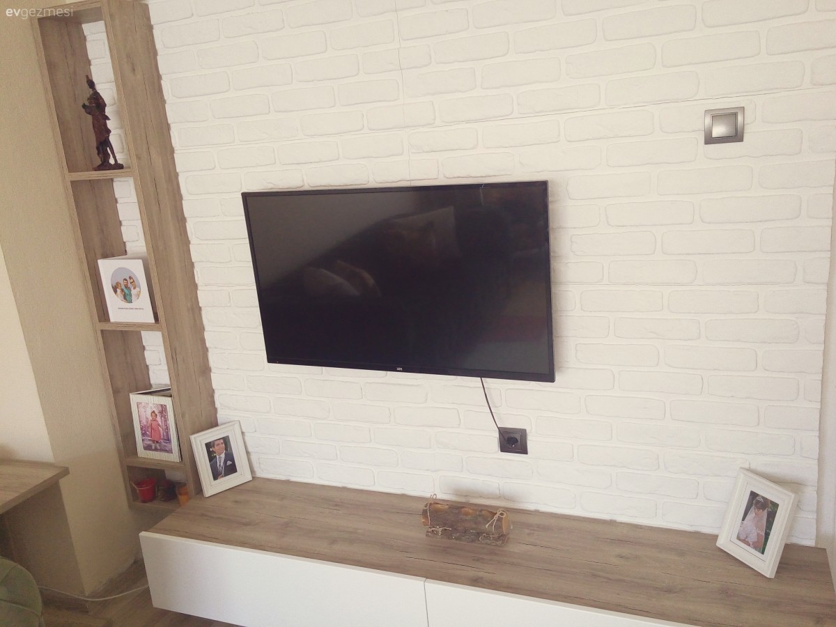 Dun mutfagimi bugunde salonumu paylasayim dedim. Yaza badana yapilcak renk daha acik olcak. Tv arkasi tuglasina uygun bi renk secicez. Uc boyutlu paneller kullandik. Hem uygun hem yapilisi kolay..