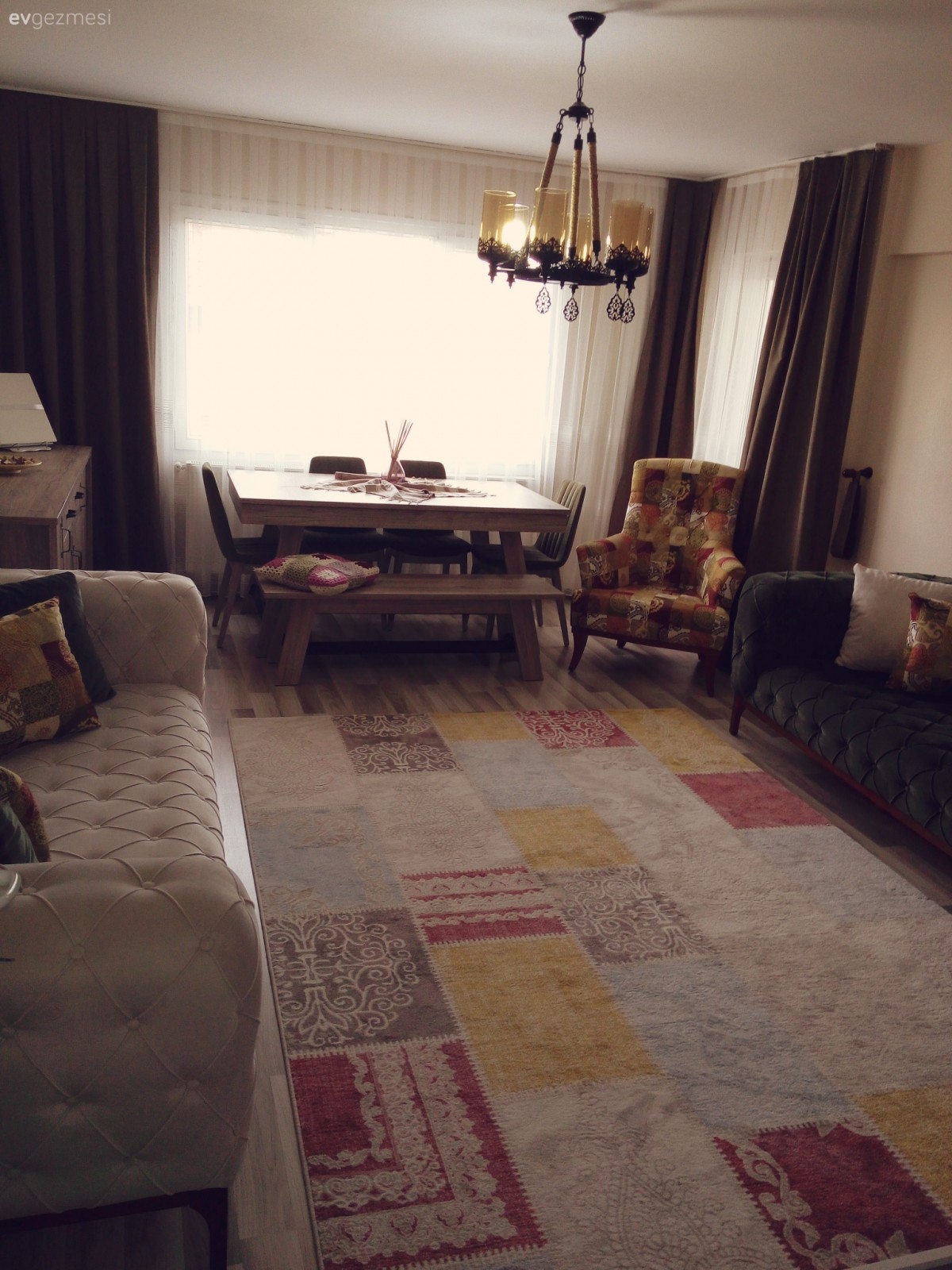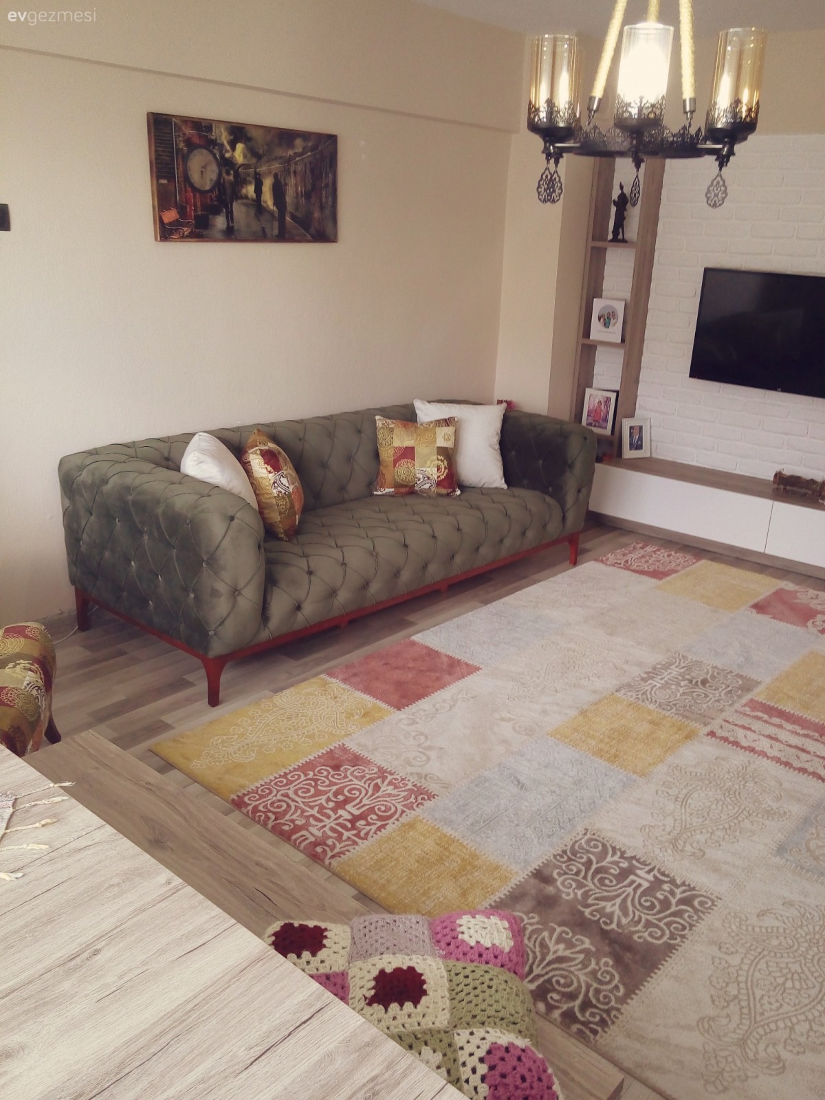 gule gule oturun ....ben küçük bir ayrıntı derim sadece mobilyalarınız cok hos koltuklarınız da her iki uyumda guzel ben birtek halınızda ki fazla desen ile berjerinize takıldım....bence berjer tekli ise diğer koltuk rengi olan krem tonunda kaplatın yada haki tercih sizin tabi yada halınızı sadeleştirin birde renkli yastıklar berjere uysun diye yapılmıs galiba ama onları da kullanmayın görseli bozuyor ...